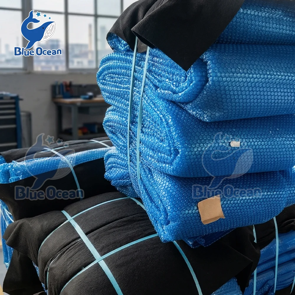 Cubierta Solar para Piscina Azul 12/16 Mil, Aislamiento de Burbujas Resistente a los Rayos UV, Retiene el Calor, Reduce la Evaporación, Ahorro Energético para Piscinas