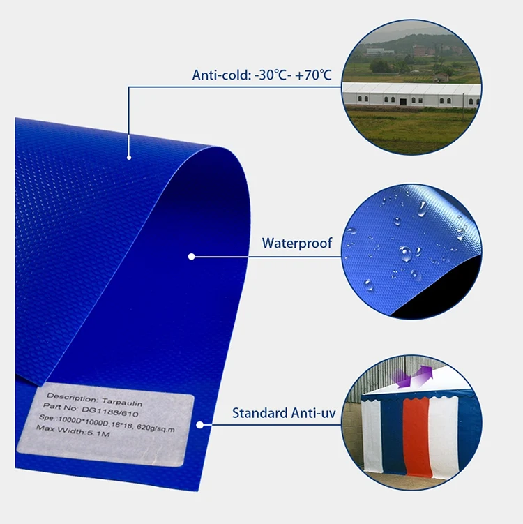 1. Cubierta de Camión/Remolque/Paleta, Techo superior y cortina lateral. 2. Carpas para eventos al aire libre (bloqueo total), toldos. 3. Refugio contra la lluvia y el sol, área de juegos. 4. Carpa militar, carpa de carro y construcción de casas. 5. Estructura de construcción con membrana, 6. Atención médica y tratamiento sanitario. 7. Deportes, tejidos hinchables, embalajes, etc. |