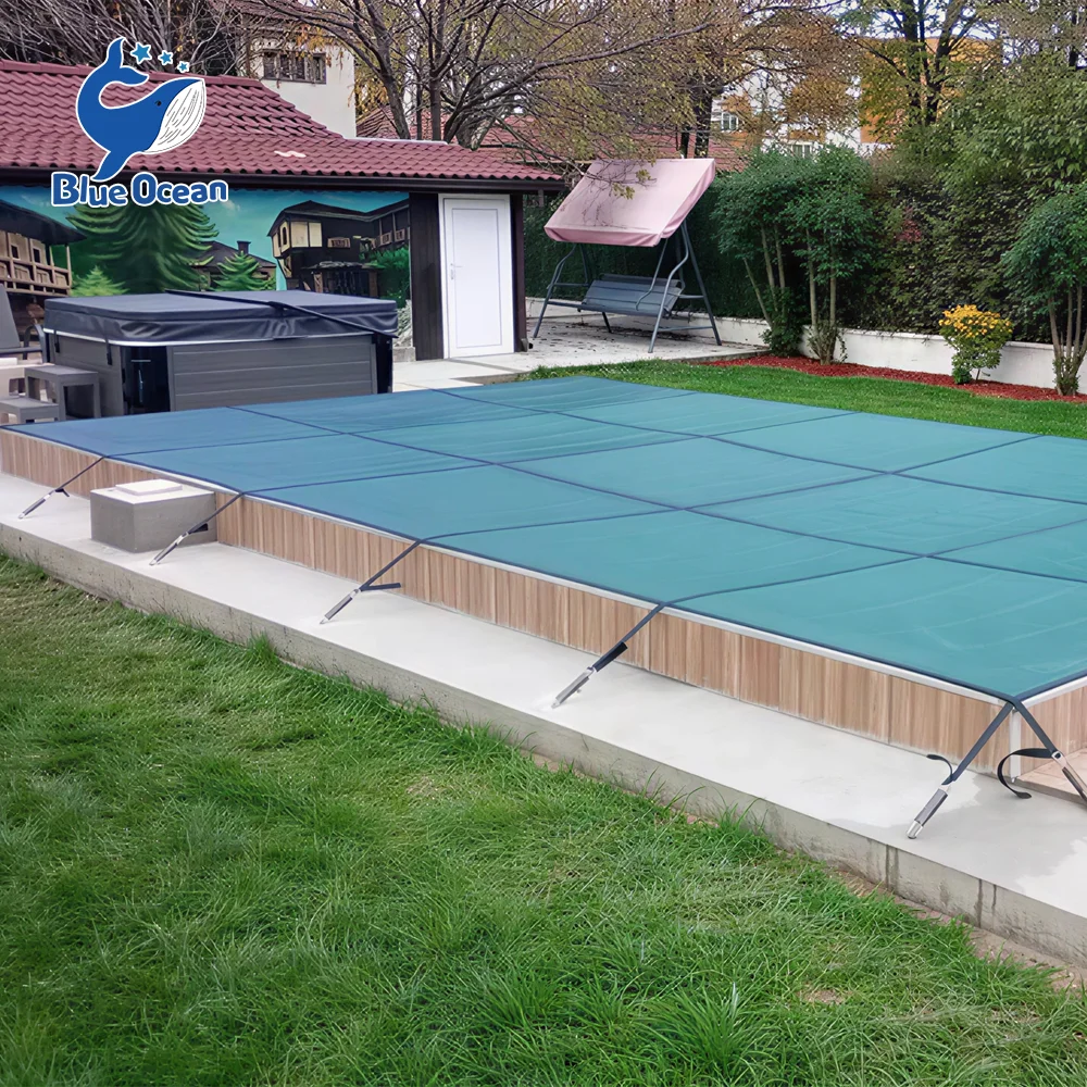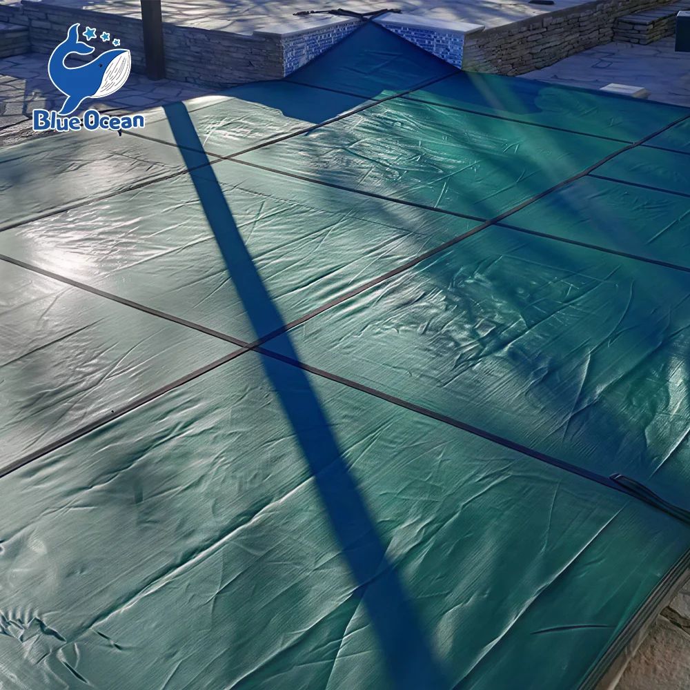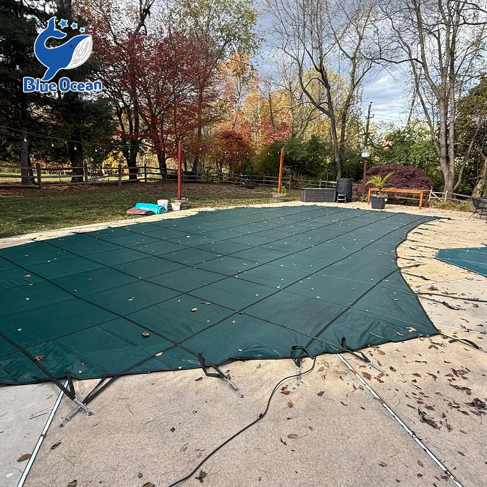 Өндөр бат бэх PP материал Цэнхэр торон ус нэвтэрдэггүй хэт ягаан туяанд тэсвэртэй хүнд жинтэй брезент усан сэлэлтийн аюулгүй байдлын өвлийн усан сангийн бүрхүүл
